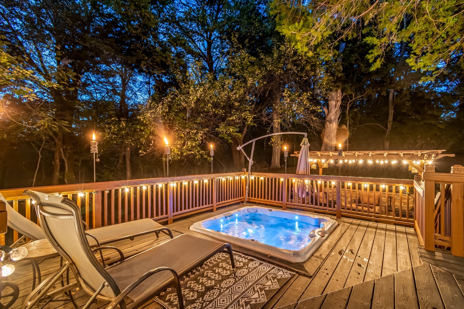 Your escape wouldn't be complete without some pampering. Slip into the bubbling hot tub nestled on the back deck – the ideal spot to unwind after a day of exploring. As evening descends, the pergola beckons, complete with a gas fire pit that creates the coziest atmosphere. It's where stories are shared, memories are made, and marshmallows are toasted.